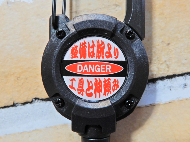 もう片方は、DANGER 整備は腕より工具と神頼みマーク